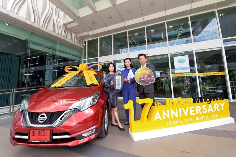 นางสาวกฤษชนก ปัทมสัตยาสนธิ (กลาง) กรรมการผู้จัดการ บริษัท อินเด็กซ์ ลิฟวิ่งมอลล์ จำกัด (มหาชน) หรือ ILM มอบรางวัลใหญ่ รถยนต์นิสสัน The All-New NISSAN NOTE มูลค่า 640,000 บาท ให้แก่ คุณศุภลักษณ์ ซื่อสัตยวงศ์ (ซ้าย) ผู้โชคดีจากแคมเปญ "17th ANNIVERSARY SALE" ฉลองครบรอบ 17 ปี อินเด็กซ์ ลิฟวิ่งมอลล์ (เริ่มตั้งแต่วันที่ 29 ส.ค. - 25 ก.ย. 2562) โดยมี นายกิตติชัย เจริญชัยวาณิชย์ ผู้จัดการทั่วไปฝ่ายกิจกรรมการตลาด บริษัท นิสสัน มอเตอร์ (ประเทศไทย) จำกัด ร่วมแสดงความยินดี ณ อินเด็กซ์ ลิฟวิ่งมอลล์ สาขาบางนา เมื่อเร็วๆนี้
